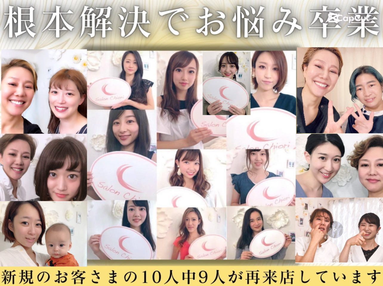 初めてサロンチオリに来店されるお客さまの10人中9人が、施術効果を実感し、継続的に通われるようになるので、安心してお越しください。