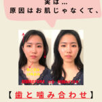 歯の不具合があると、噛むときの筋肉に負担がかかり、こわばりや引きつれを起こします。その結果、片側の筋肉ばかり緊張し、顔が左右に引っ張られるように歪んでいきます。さらに、血流やリンパの流れも滞るため、むくみやたるみの進行にも直結します。
